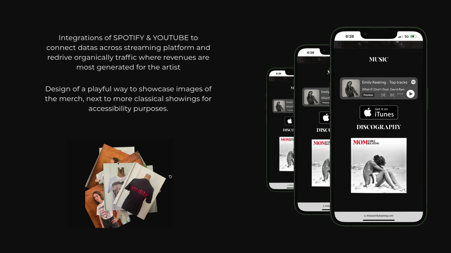 The project required a sleek and manageable website acting both as a visual signature and a functional hub for her audience. One priority was to connect seamlessly to major platforms such as Spotify, YouTube, and Apple Music, while ensuring that Emily and her team could easily update content, tour dates, and media.